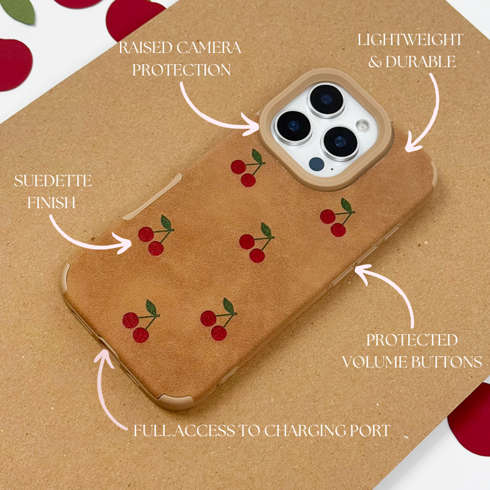 Meet your new main squeeze - the Suedette Phone Case - Cherries 🍒✨